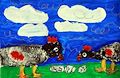 Bud, I love this one!!!! The colors and your chickens look so excited about the eggs!! Are the eggs theirs?? This one makes me smile!!! -- mom
