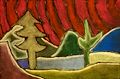 Samantha, I am looking at oiur picture of the trees and rolling hills. They say art is an expression of your "feelings". I am curious why and how you created this picture. It's my kind of place --- nature --- with the freedom of rolling hills, pine trees and WOW --- that sky. Why is the sky "red"? Is it meant to be a sunrise or sunset???? It sure is colorful. Good job, cutie --- keep it up. I would LOVE to see another artist in the family. Love you SO MUCH! GRANDMA JEAN