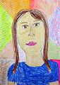 I love your new self portrait. It shows your new short haircut and the "Justice" clothes that you love to wear. You are a very good artist and I'm proud of you ! Love, Mommy