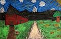 Hi Shelby, This is a beautiful picture. Did you paint it or color it? Is the apple tree Great Grandma's apple tree? You are doing great. Grandma