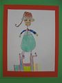 Looks like your elf is busy gathering gifts for Santa's sleigh. What's your elf's name? She/he has a nifty hat--nice work on how it looks folded/angled on top of head.
