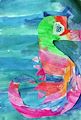 Wow!! Such a colorful seahorse. I feel like I am in the water scuba diving with the little guy! Good job Gabby!