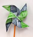 Wow! You really must have thougth ahead to make every other piece of your pinwheel different. Great colors, I love green and blue together! I love it :-) Does it go around easily? Grandma and Grandpa B