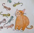One of my favorites Erin. You did such a good job painting this. I like how you worked so hard and made all the colors. Love the cat!