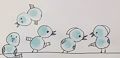 What sweet looking birds! I wonder what that one bird is looking at?