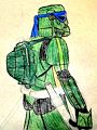 The way that you combined two movies into one character was brilliant. The Turtle Trooper looks amazing with the green armor and his white sword, I also love the blue head band over his mask.