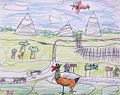 I am pretending I am looking out my treehouse through the trees and I see all these patterns. I call this place "Patternhood" and I have a pet chicken that is looking at Patternhood too.