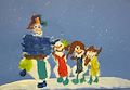 Hild...this is so adorable! I want to frame it for sure....I hope you bring this home from school in one piece! This must be us as snowmen huh? Dad, me, you and lil sis! So very cute. Great job!