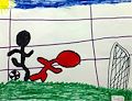 Well, Trent, since you asked......I am SO impressed with your figures in their soccer action, the grass and the net-wowser! Really well done! Something to consider; does the sky stop like you drew it? Sun-in-the-corner? NO! But truth is I barely noticed the background because the main event (the soccer game) is really great, so BRAVO!