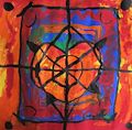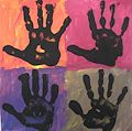 This picture is very unique. Each of the hand prints in your last art creation, are different, and appear to have a funny kind of face within them. I love the background colors as well. You are getting to be quite an artist!!!Love, Busia