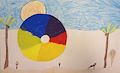Grant, I love this art work! I like how the colors of the circles change as they overlap one another. I also like how you have the tiny yellow circle at the top just hanging out by itself. You are very creative and I'm very proud of you! Love you! Aunt Pam