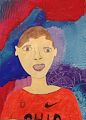 Grant, this is a wonderful self portrait. I especially like the nike "swoosh". I also really like your choice of background colors and the way your shading of your shadow turned out too. I'm so proud of you! Xoxo Aunt Pam