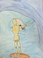 Ryan, this is a very cool piece of art. By far, my favorite of the group that are posted. It's very futuristic, which is cool and it makes me wonder what the mannequin/robot is thinking as he/she looks out the window. I want to know more about what you were thinking when drawing this and what your story is behind the work of art. Very cool!