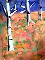 Wow, Leyton, those birch trees look just like the ones in our woods. The floor of the woods looks pretty like your painting and the pathways that Bop mows are all covered with colorful leaves. Miss you, Buddy and will see you soon! :)