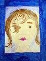This is way cool! I love that you are experimenting with different colors....not your usual colors. The face looks like a blue Elmore. I am glad you are already learning the different types of art.