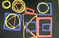 I think my favorite is the blue square, yellow circle, and orange triangle combination on the far left. But I sure do love all of the yellow you used! Good job!