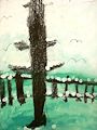 Beautiful work. Your monochromatic value scale painting makes a wonderful background for your winter tree. You achieved the standard of foreground, middle ground, and background with the correct placement of the tree, fence, birds, and bright color on the value scale. The snow really appears to be catching in all the angles on the tree and fence. Good job! Keep up the great work. Your artistic skills are improving with each project!