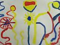 Very good! You have achieved the standard of identifying and drawing a composition using basic geometric and freeform shapes. These elements of art are the building blocks in learning how to draw well. Another standard of learning how to "fill up the paper" with good composition is also evidenced here. Your use of crayons and fine motor skills in how good you color are also improving. What wonderful art you are learning how to create. Keep up the fantastic work. You have grown much in your artistic development. You are becoming a very good artist!