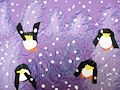 You have done a great job using the element of art LINE to show movement. Wavy lines for the water, zig zag lines create the icebergs and those swirls made some really fun slippery slides for the penguins to play on! Your cutting skills are improving too. Cutting the corners off squares to create a more rounded shape does take practice. Also cutting triangles for beaks and feet takes practice too. Love your creative penguins. What fun this lesson was. Love the gentle snow fall too. Great work painting with the q-tips! You have achieved all the standards......but remember to keep practicing to improve cutting skills even more!