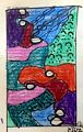 I may have nightmares tonight because this is a very very scary picture! I really do like the black background with the bright colors providing the highlights! I have been in Dripping Springs celebrating my eldest neice's 40th birthday......she's holding up well for her age. If only I had shown her this masterpiece, it would have made the birthday perfect. Love to you all and congratulations once again Eliza on a great work of art. Uncle Tom Gregory