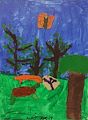 Miller, I can tell you studied Vincent van Gogh when I see this painting. I love the vibrant colors! You are really becoming a wonderful artist. Love, Grandma Barbie