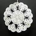 people say its hard to do a snow flake on a snow flake so i tried it and it was not easy but not hard. when you flatten it out you have to be careful not to bend the corners but it ternd out great and cute p.s i did the dots with a hole puncher.
