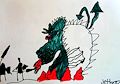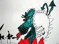 Dragons were fun to draw for our next lesson in lines. Here we begin to work on the coloring with markers. I am looking for bright full colors. Watch out for little white gaps in your color. The goal is to have solid shapes of color. And when the marker isn't giving you complete coverage-----TOSS IT! We want great colors for our dragons!
