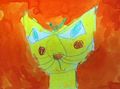I thought I saw a 'puddy cat'! What a good looking cat and a lovely bird! I especially like the way you blended the different shades of orange on your background. Keep up the good work! Love, Aunt Mary