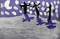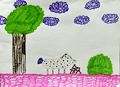 I am really loving the polka dots and the purple clouds. This is a very happy picture, it makes me smile. Great job my little artist!