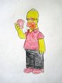 DOUGHNUT! Wait, why is Homer's mouth red and his eyes bloodshot? Zombie or Vampire Homer, RUN! Better yet, VAMBIE HOMER, RUN! Ah, good drawing.