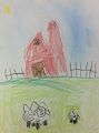This is one of my very favorites of your artworks! Your red barn is so nice and even has a silo to store the farm's grain to feed to the animals. You have a nice tall fence to keep the livestock where they belong, and your sheep is SO good! Nice and fluffy! How did you do that? Pretty clear blue sunny sky, and you even used two shades of green in your grass. Good job. I'm impressed! Love you so very much, Maner