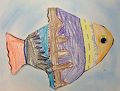 Dear Jordan, Bob says he couldn't go as good job as you have done on your fish. And he is an engineer! I like the colors you have chosen - purple, orange, yellow, aqua, brown and black to make a very colorful fish. It is a colorful as the state fish of Hawaii - the Humuhumunukununukuapuaa. Great-grandma Pat