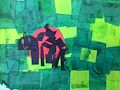 Dear Jordan, I am very impressed that even though you are only 8, you have already progressed to modern art. Your art looks like two blankets to me in basic colors. The bottom part of each one looks like a city with houses but upside down. The blue part next to the houses appears to be farmland with farmhouses and crops. You have done a really great job with this artwork. Congratulations. Grandma Pat
