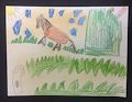 Dear Jordan, Grandpa Bob, who is an engineer, is especially impressed by the horse in your drawing. He says that everything about the horse is so clear - its eye, nostril, ears, its forelock, its body, and its mane. Not only am I impressed with the horse but with your clear definition of background, mid-ground, and foreground. I think I can even see a horsefly in the background. Very well done! Grandma Pat