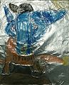 Dear Jordan, I really enjoy looking at your latest art project, Blue Dog. I like the imaginative way you have produced the blue dog's face superimposed on the silver background and over the brown. Congratulations on another masterpiece, Great-grandma Pat