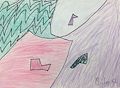 Miles, I am just seeing this rainbow piece for the first time. Wowza! It pops from the page, and the splatter paint adds depth and interests me. Great job, kiddo! Love, Mama