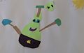 What a cute little character. I can't quite figure what he is or what he is doing, but I like the drawing.