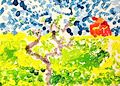 FIRST GRADE students enjoyed their art time outside on our beautiful campus grounds (en plein air). They were asked to draw one special tree, and "not a broccoli." Afterward, students were expected to create their own greens and browns vs. taking the easy route and plopping their brushes into the ready-made paint! The works were filmed in progress during our plein air sessions and also while students were painting indoors. These are complicated works that required observing nature in a three-dimensional environment and visually translating what students observed into a two-dimensional representation! The e-portfolios while in progress are available on my Twitter account @RuthKeefer and also on YouTube (Ruth Keefer art). These delightful landscapes from our own campus would make memorable note cards and/or gifts for your friends and family. Thank you for supporting ParishArts! I would love to take all of these works home with me!