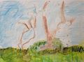 FIRST GRADE students enjoyed their art time outside on our beautiful campus grounds (en plein air). They were asked to draw one special tree, and "not a broccoli." Afterward, students were expected to create their own greens and browns vs. taking the easy route and plopping their brushes into the ready-made paint! The works were filmed in progress during our plein air sessions and also while students were painting indoors. These are complicated works that required observing nature in a three-dimensional environment and visually translating what students observed into a two-dimensional representation! The e-portfolios while in progress are available on my Twitter account @RuthKeefer and also on YouTube (Ruth Keefer art). These delightful landscapes from our own campus would make memorable note cards and/or gifts for your friends and family. Thank you for supporting ParishArts! I would love to take all of these works home with me!