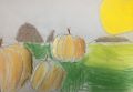 Max, good job on shading the right side of your pumpkins (the side opposite of where the sun is shining) and highlighting the left side of the pumpkins where the light would be shining on them. Highlighting and shadowing creates depth and dimension in your artwork so that the picture does not appear flat. Nice job.