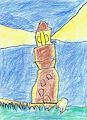 The lighthouse composition illustrates the student's ability to follow directions, draw shapes, placement of shapes. and render in color. The overall effect to visually convey a lighthouse located on an edge of land by the ocean.