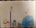 Hey Nolan, Great basketball goal. I like how you used patterns to create the net. I also the satellite on the igloo. That is too funny! Love, Mom