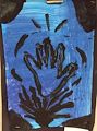 Hi Sweetie... Experimenting and being inspired by Native American art is great way to look at pieces in a Museum. This piece reminds me of Nate's work. Nice job. I am sure there is a story in the center. Since I never saw this when you did it, it's quite a while ago that you did this. You may have even forgotten what the story in the center is about... but heck, you can make up a new one! I like this.