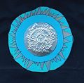 An artist taking a break from her work...and wearing a coconut hat!