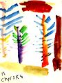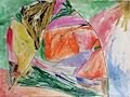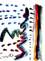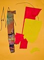 Christo, these are terrific color selections with the darker yellow or mustard background and the brighter colors in the foreground. I especially like what i see as the motion of the red banner with the brighter yellow patch below it. Your shapes and their sizes are all different from each other. Se ayapo Christo moo. Papoo.