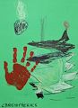 Yassoo, Christo moo. I REALLY like that green color of your background. Is that your handprint? I am curious what your thought was while painting this. Se ayapo my sweet Christo. Papoo
