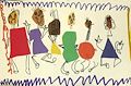 I absolutely love this artwork. It's beautiful!!! Perfect!! All the colors, fun shapes, and purple squigglies on the top and bottom!!! You did a wonderful job on drawing the faces to!!! Awesome job!!!