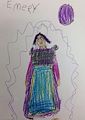 Emery -- the custome is very pretty with a lot of bright colors. She kinda looks like me. Great drawing! Love Nana