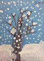 Beautiful snow is coming the little tree looks so happy. Love Nana