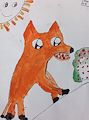 Mr Fox is after something but Ms. Sunshine is keeping a close watch over him. You did a goof job painting a wolf and happy sunshine. Good choice on color. Love Nana